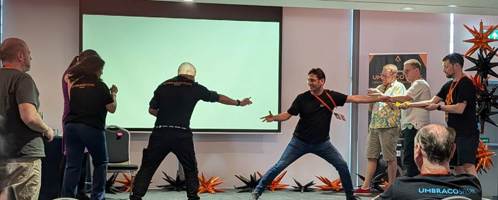 After a reasonably smooth but delayed journey, in which I attempted to not get tutted out of the quiet coach for laughing out loud at several bits of the (very good) Audible version of Project Hail Mary, I arrived in Bristol in time to check into my hotel and have a wander around Bristol’s harbourside area in search of food with some fellow Umbracians. Then it would have been onto the pre-conference party at Roxy Lanes, but due to a recent bout of crunch hours on a critical project I opted to head back to the hotel to be fresh for the next day’s events instead. Last year’s party was a lot of fun and I’m assured by those with more stamina than me that this year’s was equally entertaining. There was talk of shots and karaoke at breakfast.